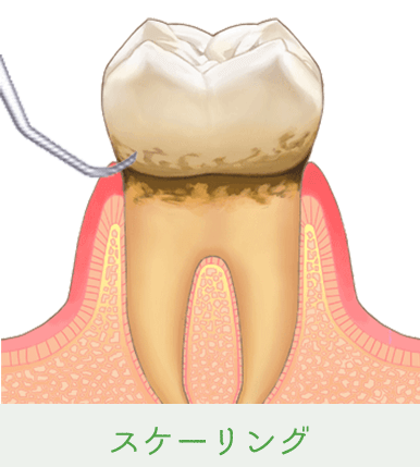 軽度歯周病治療にはスケーリング、中度歯周病治療にはルートプレーニングという治療方法で歯石を除去していきます。