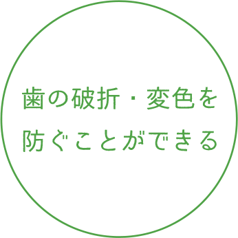ファイバーコアの場合、金属と違って歯根と同程度の硬度と適度な“しなり”があるので、歯が割れてしまう可能性を低く抑えることが可能です。