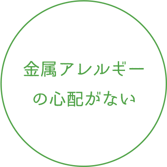金属を全く使用しないので、金属アレルギーがある方にも安心です。